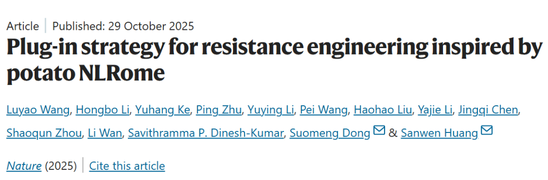 北京时间2025年10月30日零时,中国农业科学院深圳农业基因组研究所(岭南现代农业科学与技术广东省实验室深圳分中心)黄三文团队与国产高清在线精品一区二区三区,九九精品视频免费,亚洲欧美日韩精品久久久,亚洲午夜精品av,97久久精品,日本青青草视频,青青青在线免费观看,伊人久久中文,69精品欧美一区二区植物保护学院/农林生物安全全国重点实验室董莎萌团队合作,在《自然》(Nature)期刊发表了题为“Plug-in Strategy for Resistance Engineering Inspired by Potato NLRome”的研究论文,为解决马铃薯晚疫病这一全球性难题提供了一个新方案。